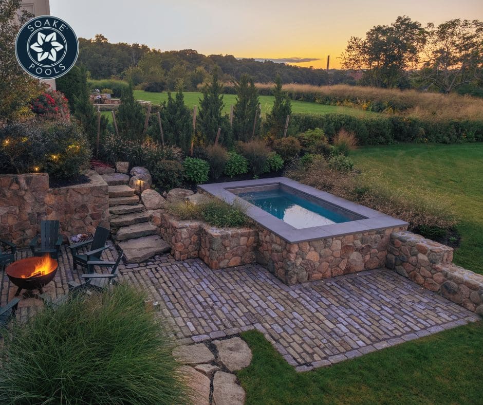 At Grodhaus Landscape Design Build, we have partnered with Soake Pools® for pool installations as part of our luxury outdoor living services. These compact, precast pools combine the best of a hot tub and a traditional swimming pool in one beautiful, efficient design. Perfect for small yards, patios, and elegant backyard retreats.